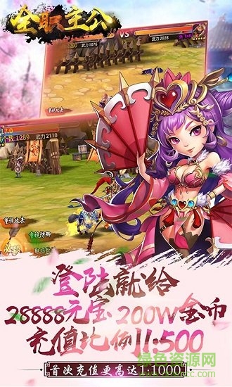 8、登陸就給28888元寶、200W金幣,充值比例1:500,首次充值更高達(dá)1:1000;