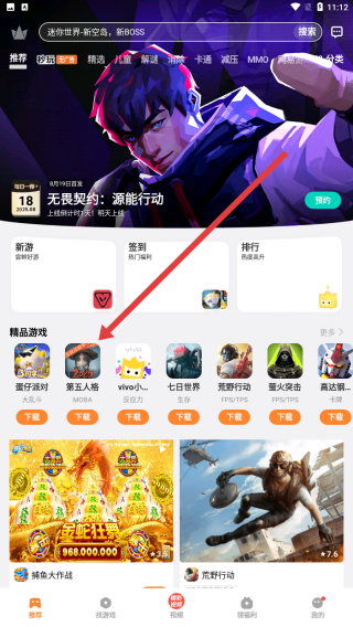 2、進入vivo游戲中心的精品游戲板塊,瀏覽推薦游戲列表,找到目標游戲第五人格,查看其展示信息。