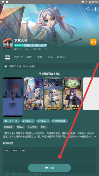 3、進入第五人格的游戲詳情頁面,了解游戲背景等內(nèi)容后,點擊底部綠色下載按鈕,開始安裝游戲。
