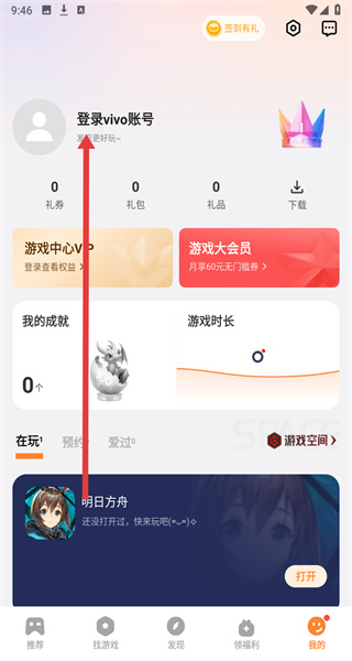 2、在進入到我的主頁后,可以點擊上方登錄vivo賬號按鈕,進行登錄操作。