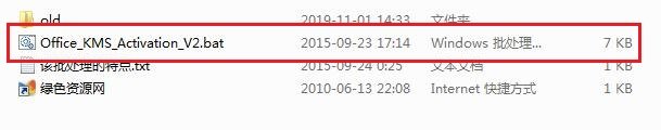 3.開始激活,打開“office365激活工具”文件夾,找到里面的“Office_KMS_Activation_V2.bat”雙擊打開