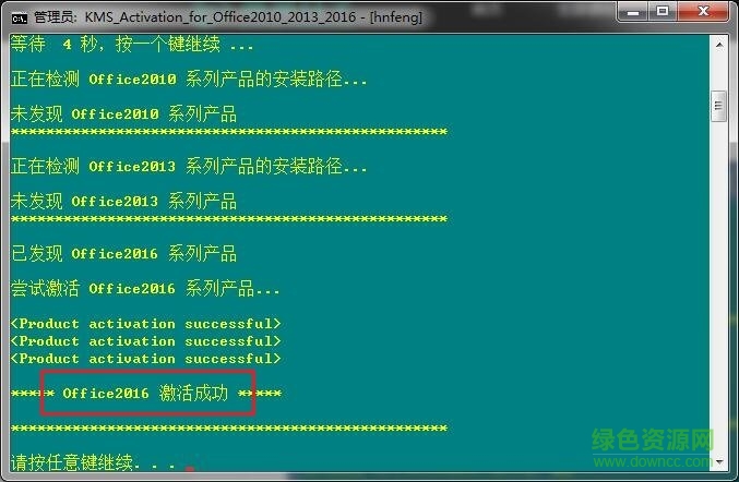 4.打開后,按任意鍵進(jìn)行(按完任意鍵后,未發(fā)現(xiàn)office系列產(chǎn)品,就再多點(diǎn)一兩下,直到已發(fā)現(xiàn)office2016系列產(chǎn)品)
