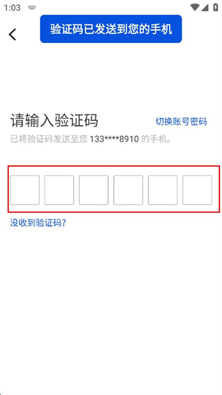 4、在驗(yàn)證碼輸入頁(yè)面,填寫發(fā)送至對(duì)應(yīng)手機(jī)號(hào)的驗(yàn)證碼,完成登錄操作。