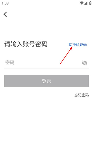 3、在賬號(hào)密碼界面找到切換驗(yàn)證碼選項(xiàng),點(diǎn)擊切換至驗(yàn)證碼登錄方式。