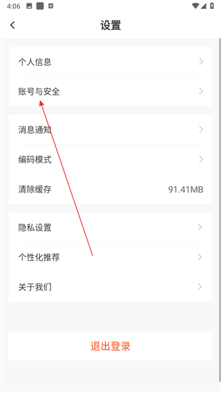3、在設(shè)置頁(yè)面里,點(diǎn)擊賬號(hào)與安全選項(xiàng),進(jìn)入賬號(hào)與安全設(shè)置界面。