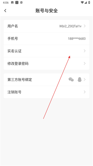 4、在賬號(hào)與安全界面,點(diǎn)擊實(shí)名認(rèn)證選項(xiàng),進(jìn)入實(shí)名認(rèn)證頁(yè)面。