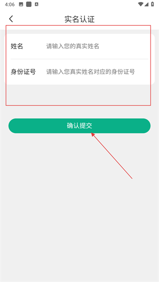 5.依次填寫真實(shí)姓名、身份證號(hào),然后點(diǎn)擊確認(rèn)提交按鈕,等待審核即可。
