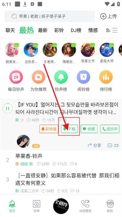 2.最熱,最新,分享,地域,彩鈴榜單,第一時(shí)間獲取你最想要的鈴聲。