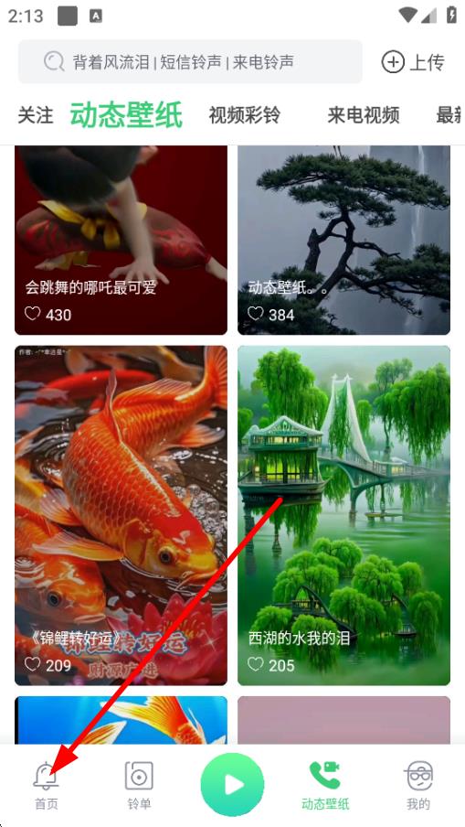 1、打開鈴聲多多App,點(diǎn)擊底部導(dǎo)航欄中的首頁進(jìn)入首頁界面。