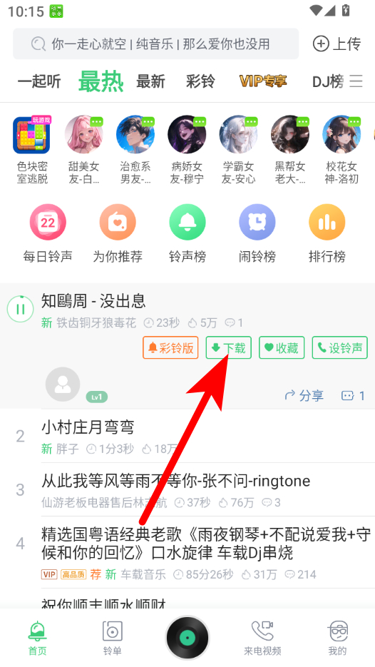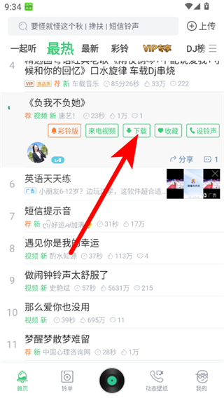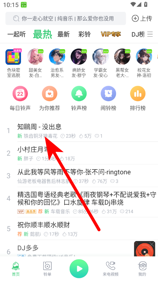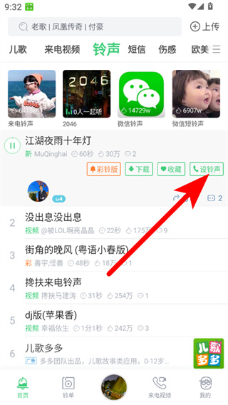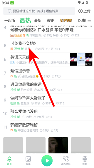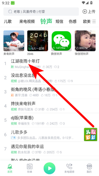 1、在鈴聲多多首頁,找到想要下載的鈴聲,點(diǎn)擊進(jìn)入鈴聲詳情界面。