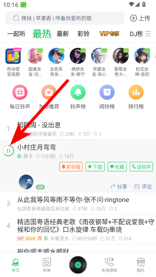 1、在鈴聲多多首頁,點(diǎn)擊要下載的鈴聲,彈出操作選項(xiàng)。