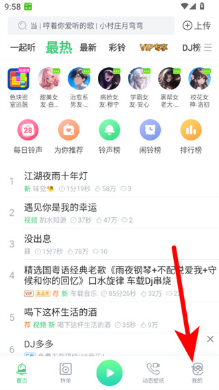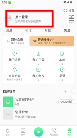 1、在鈴聲多多app首頁,點(diǎn)擊右下角我的選項(xiàng),進(jìn)入個(gè)人界面。
