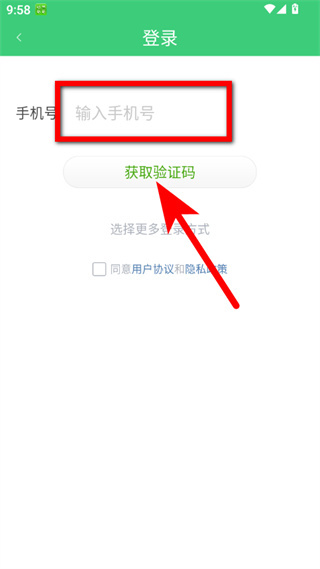 4、在手機(jī)號(hào)登錄界面,輸入手機(jī)號(hào)后點(diǎn)擊獲取驗(yàn)證碼,完成登錄操作。
