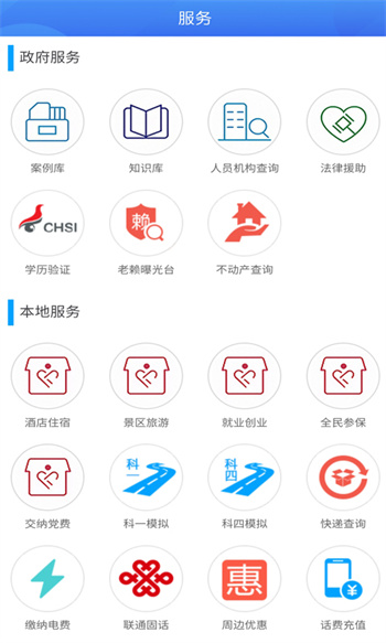 “服務(wù)”版塊, 分為“政府服務(wù)”、“本地服務(wù)”和“公共服務(wù)”三個(gè)欄目,為用戶提供不同領(lǐng)域的信息查詢服務(wù)。