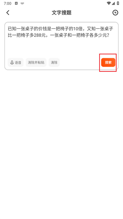 3、填寫完整后,用戶需要點(diǎn)擊搜索框右下角的【搜索】按鈕,以進(jìn)行題目的搜索,出來后即可查看解題過程和答案;