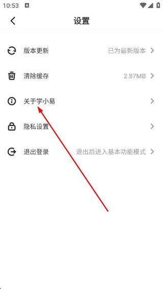 3、進(jìn)入設(shè)置頁面后,找到并點(diǎn)擊關(guān)于學(xué)小易選項(xiàng)。