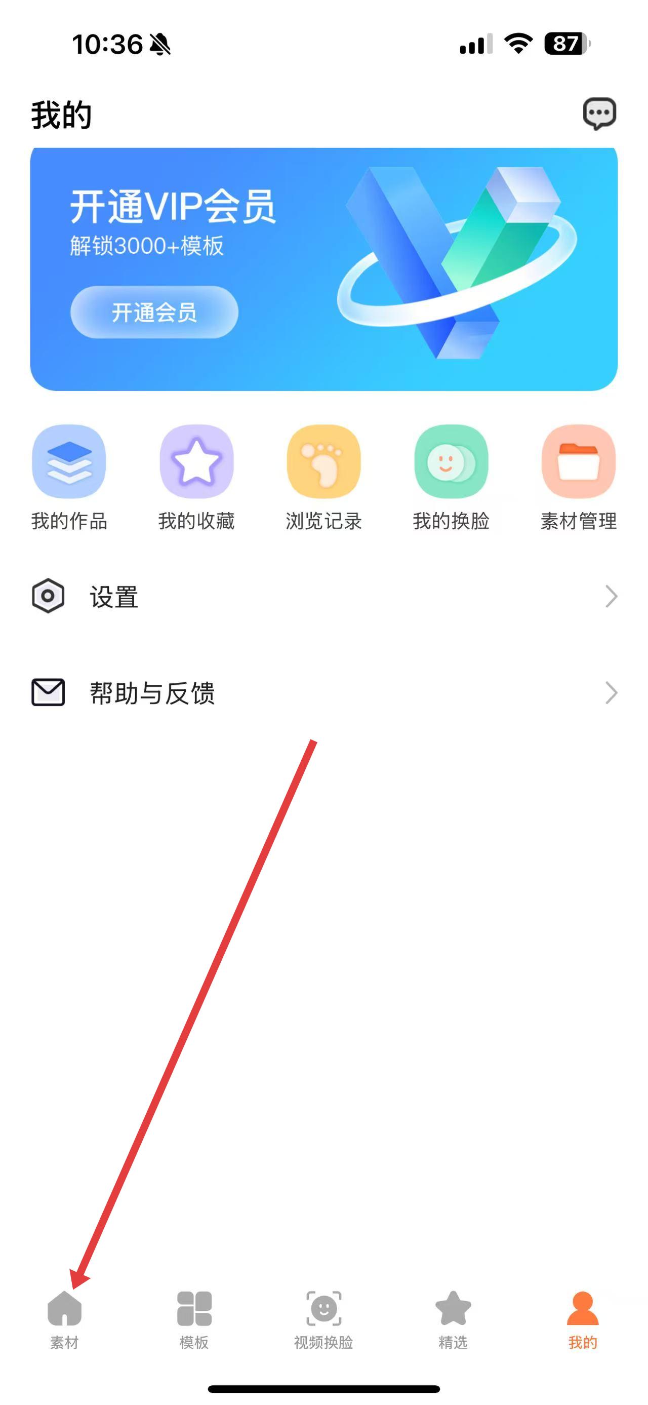 1、打開趣推APP,點擊底部導(dǎo)航欄中的素材按鈕,進(jìn)入素材頁面。