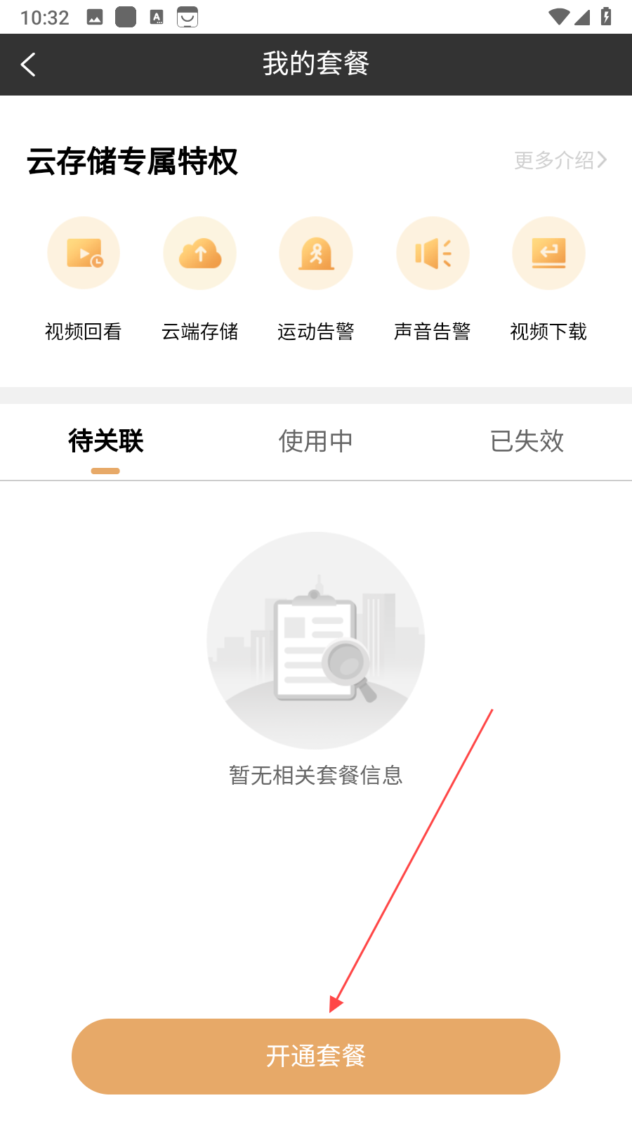 3、在主界面點(diǎn)擊套餐管理進(jìn)入我的套餐頁(yè)面,查看云存儲(chǔ)專(zhuān)屬特權(quán)介紹,確認(rèn)后點(diǎn)擊頁(yè)面下方橙色開(kāi)通套餐按鈕,選擇合適的套餐并根據(jù)支付提示完成套餐開(kāi)通。