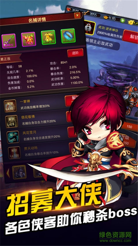 2、直搗通天閣,大鬧武斗場。蜀中唐門,尋找仙靈鳳丹,尋龍澗,獲取強化神石。戰(zhàn)武當,贏得天心石,彈劍而歌,快意江湖。還有超高的掉寶率,讓你點錢點到手軟。