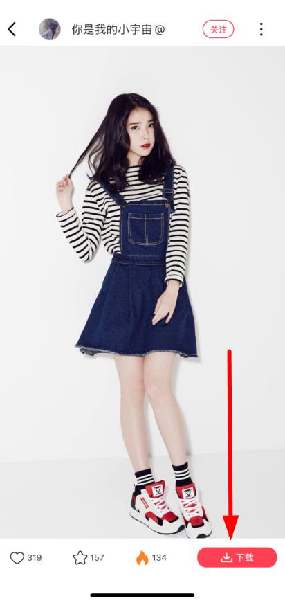3、進(jìn)入圖片詳情頁,下滑找到底部下載按鈕,點(diǎn)擊該按鈕,即可將圖片下載保存至手機(jī)本地。