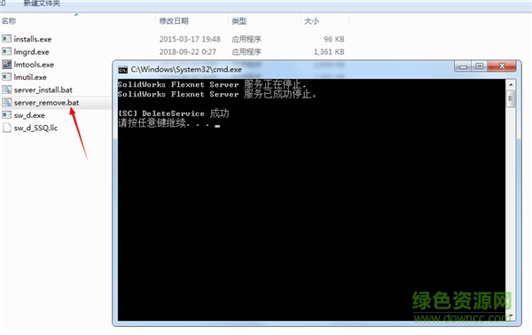 1.管理員身份運(yùn)行“_SolidSQUAD_\SolidWorks_Flexnet_Server\server_remove.bat”然后等到服務(wù)“ SolidWorks Flexnet服務(wù)器”將被刪除