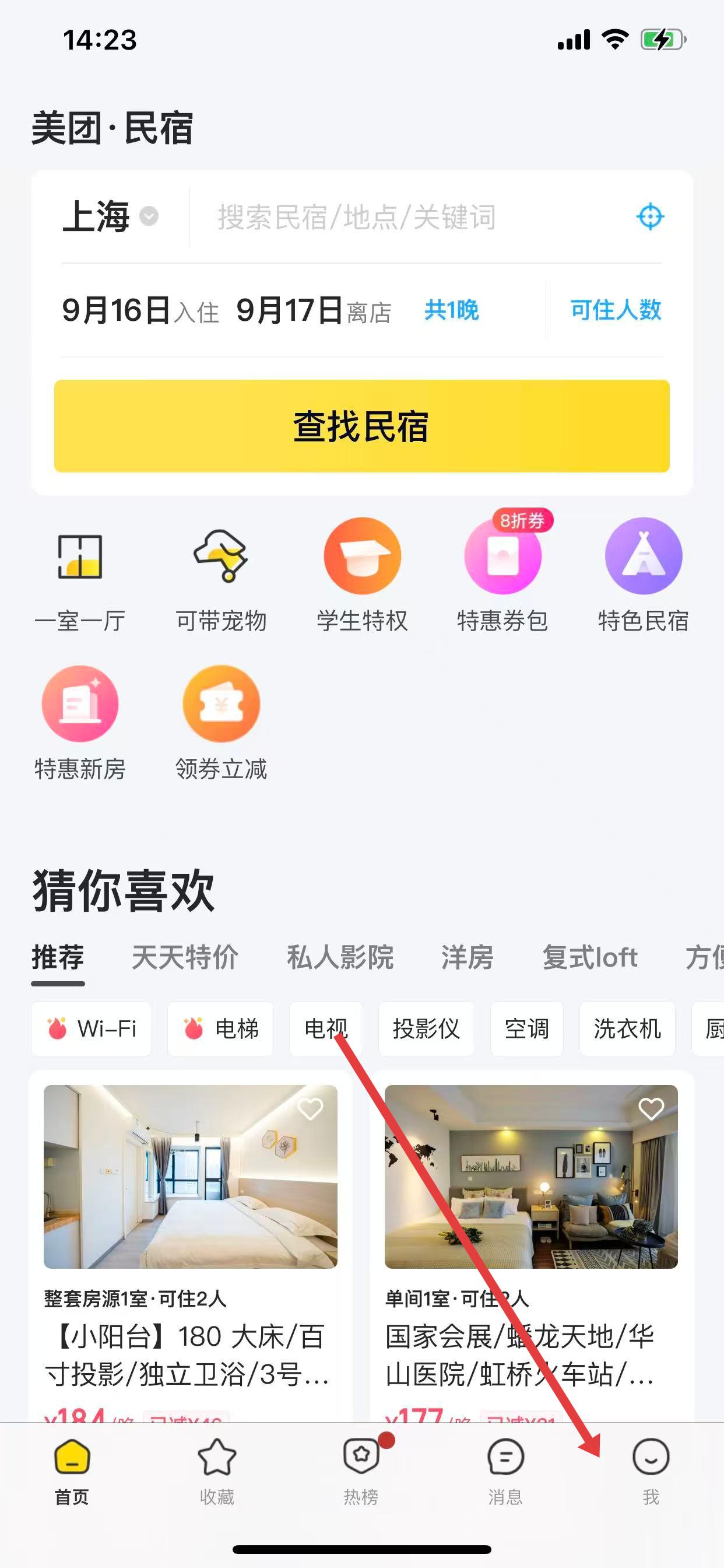 1、打開美團民宿App,點擊底部導(dǎo)航欄中的我選項。