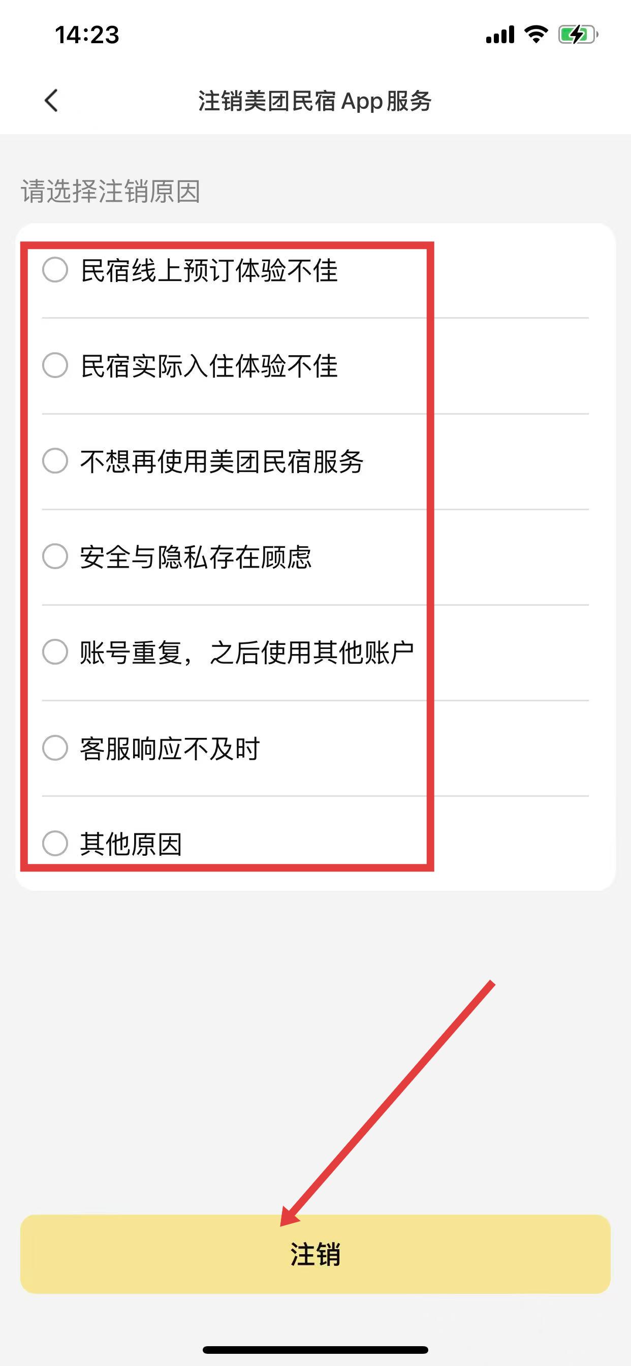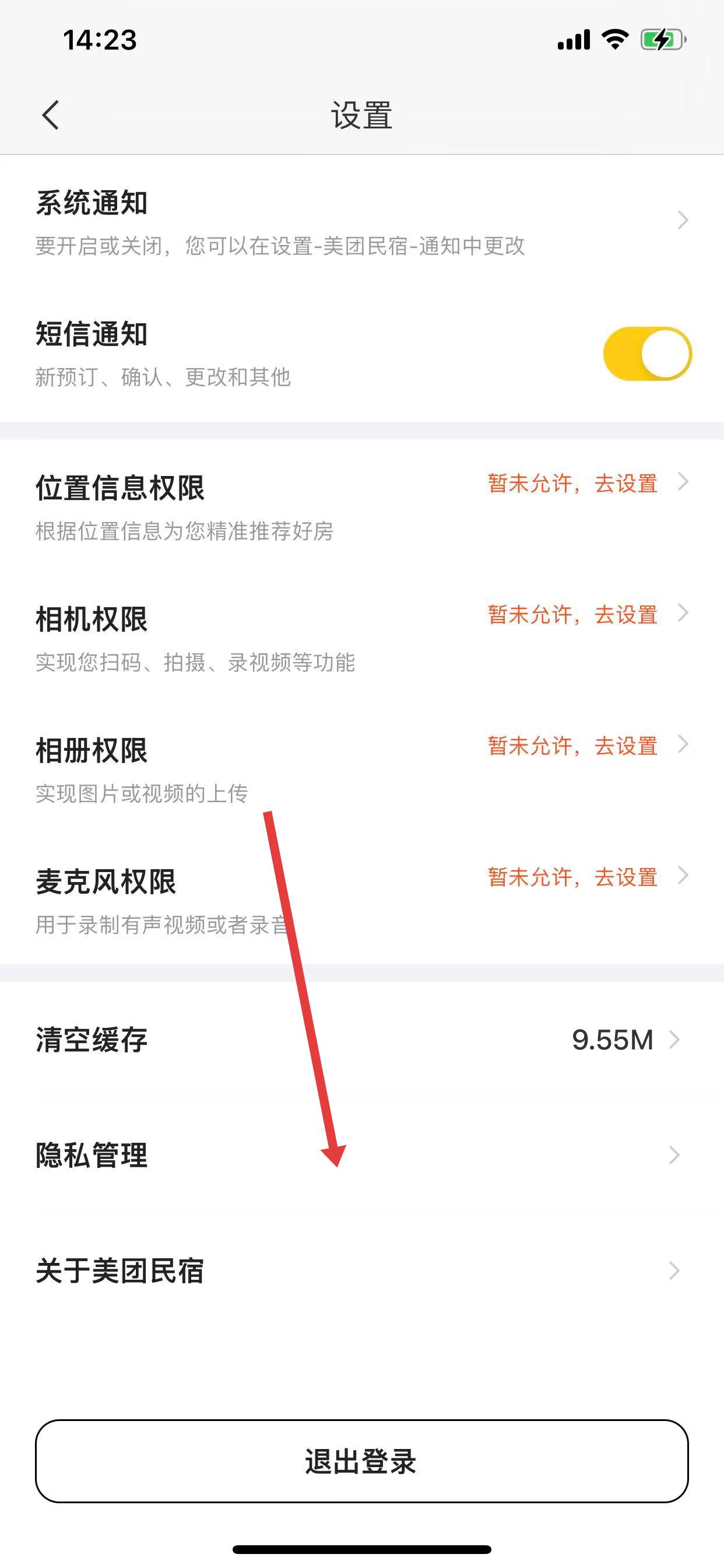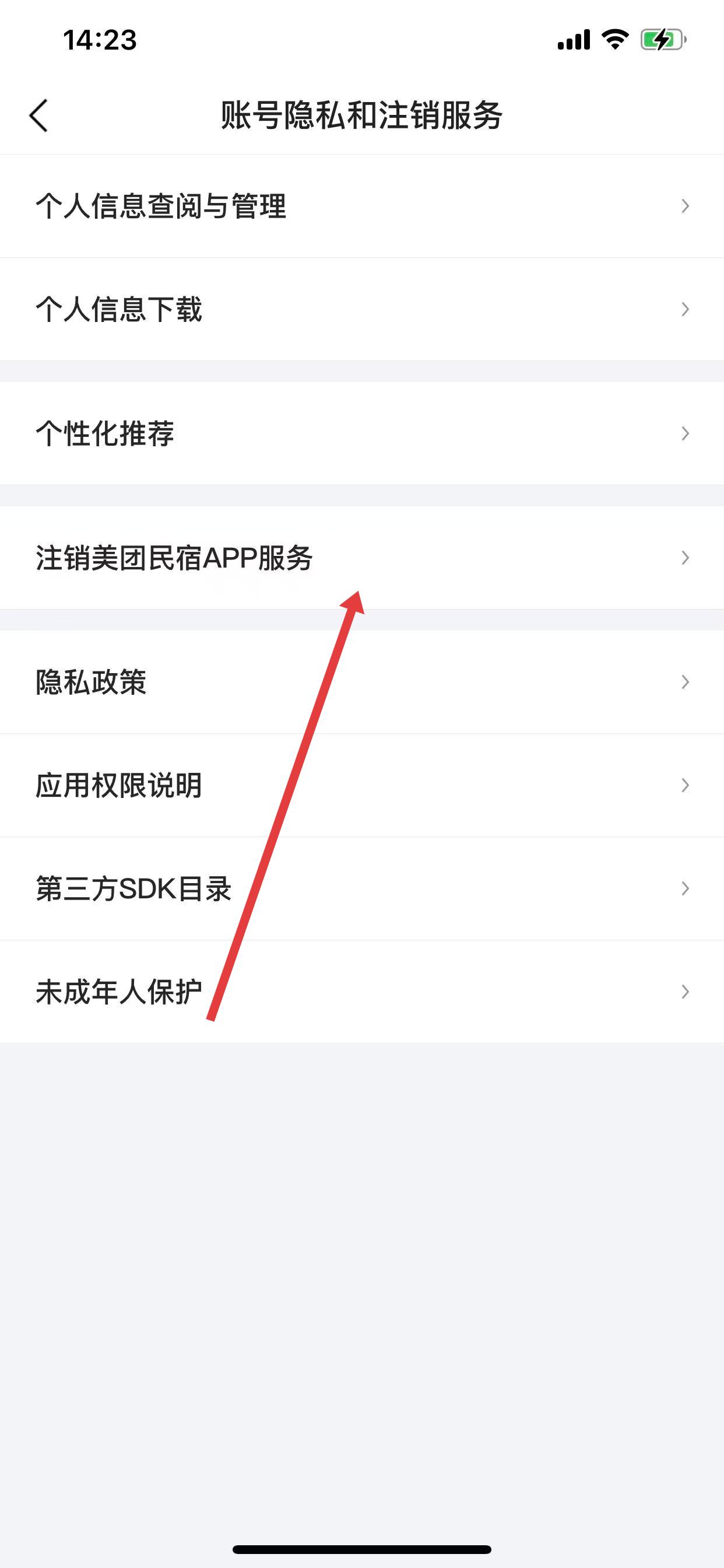4、在隱私管理頁面,點擊注銷美團民宿APP服務(wù)選項。