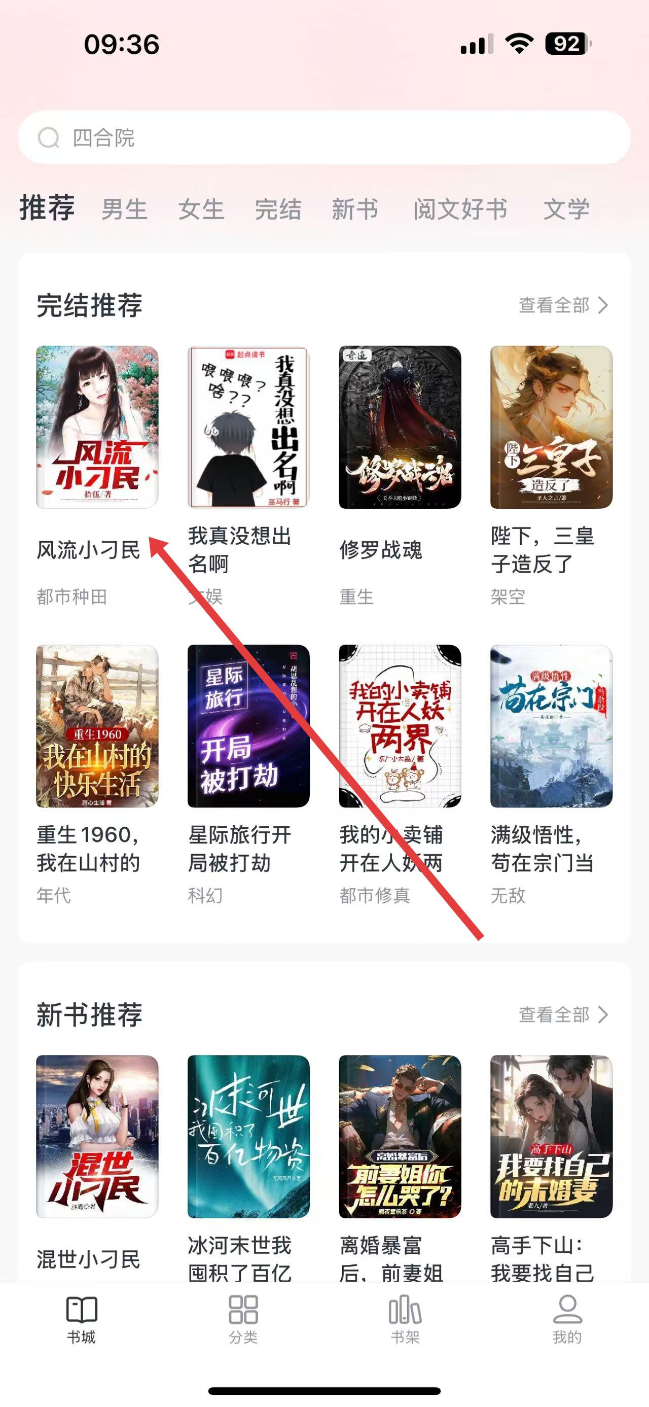 1、打開全本免費閱讀器應用,進入書城頁面,瀏覽各類書籍,選擇你感興趣的小說,比如點擊風流小刁民。