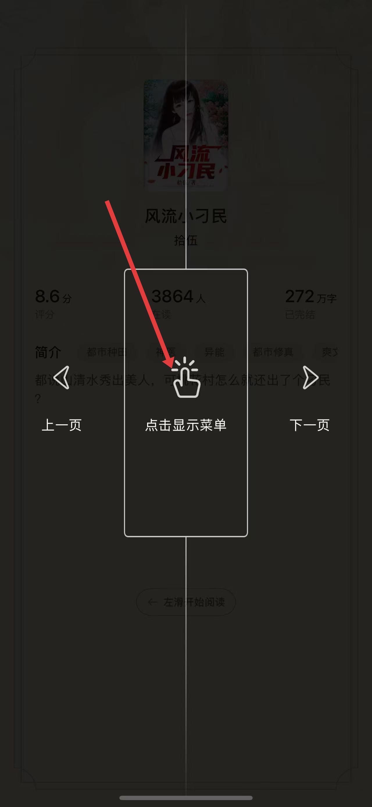 2、在書籍介紹界面,點擊點擊顯示菜單或相關開始閱讀的按鈕,進入閱讀界面。