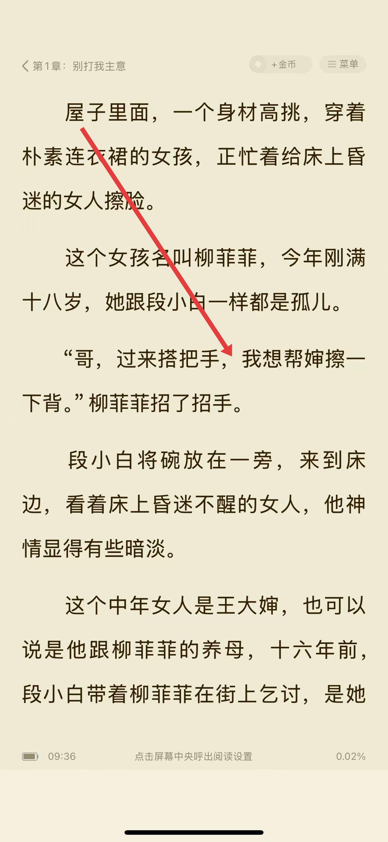 3、進入閱讀界面后,就可以開始閱讀小說內容。閱讀時,點擊屏幕中央還能呼出閱讀設置菜單,對字體大小、亮度、背景等進行個性化設置。