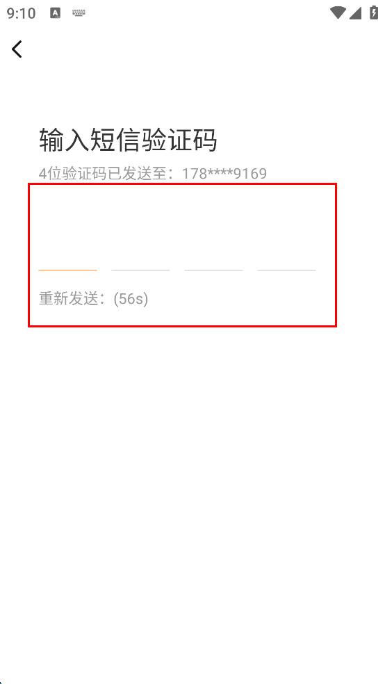 3、在短信驗(yàn)證碼輸入頁(yè)面,輸入發(fā)送到對(duì)應(yīng)手機(jī)號(hào)的4位驗(yàn)證碼,完成驗(yàn)證。