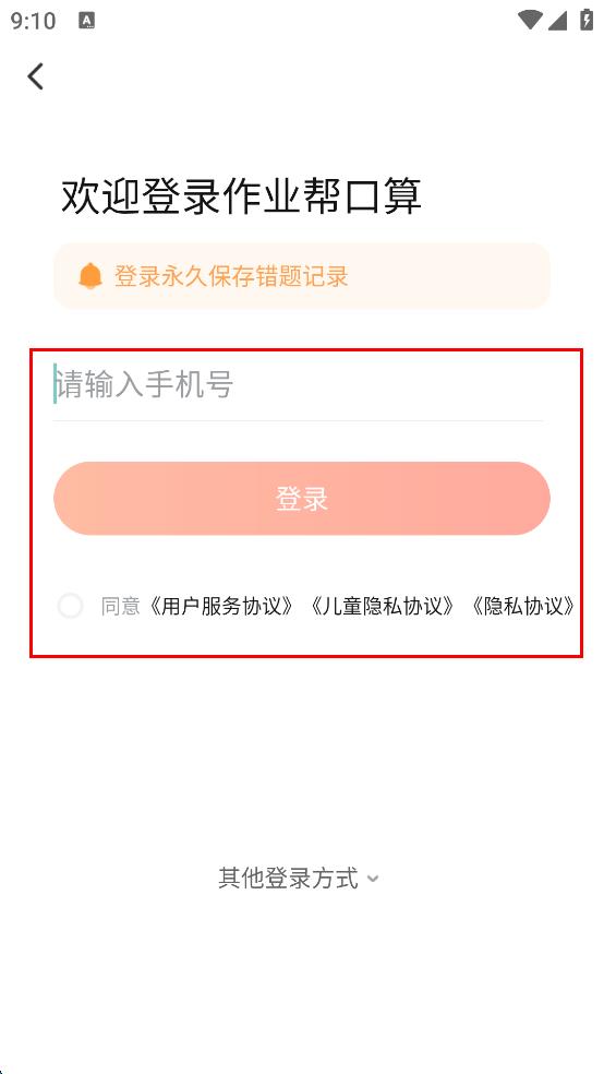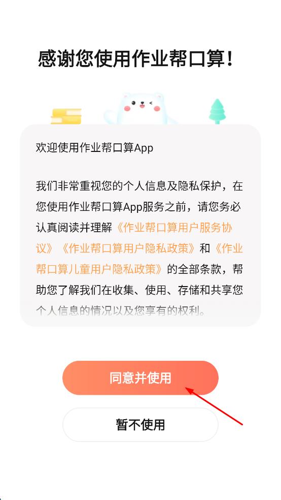 1、打開(kāi)作業(yè)幫口算,進(jìn)入初始頁(yè)面后,點(diǎn)擊“同意并使用”,進(jìn)入登錄界面。