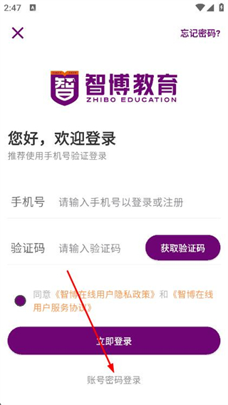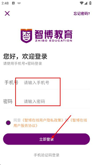 4、填寫手機(jī)號(hào)和密碼,點(diǎn)擊立即登錄即可完成賬號(hào)登錄。