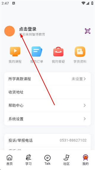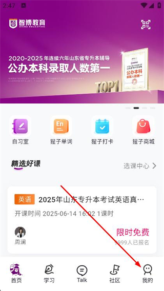 1、打開智博在線app,點(diǎn)擊底部導(dǎo)航欄的我的選項(xiàng)。