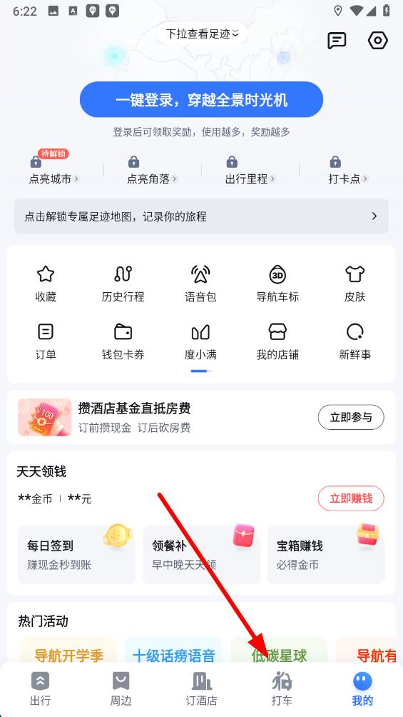 1、打開百度地圖應(yīng)用,點擊底部導(dǎo)航欄中的我的選項,進(jìn)入個人相關(guān)界面,在界面中找到自己所需功能的入口。