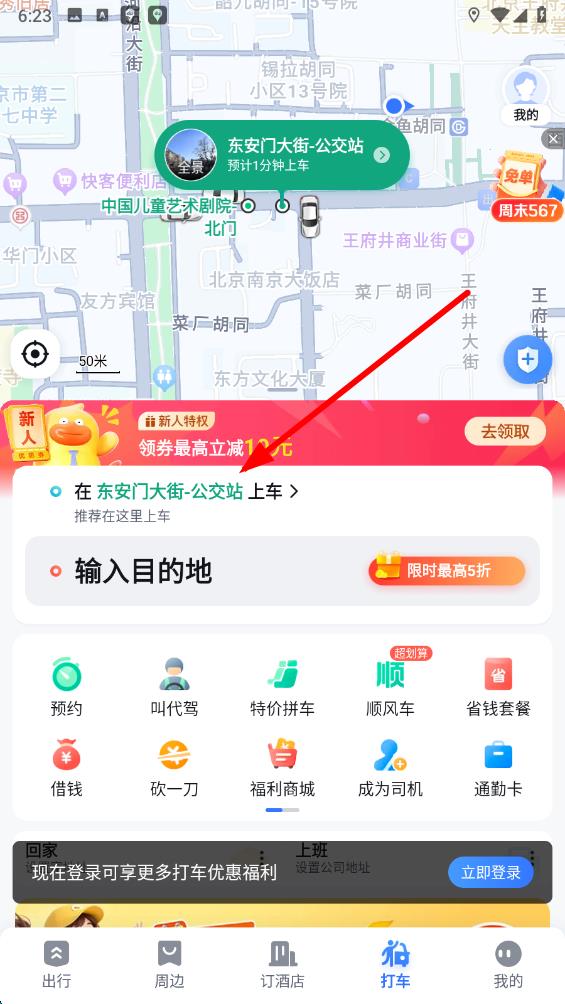 3、在打車服務(wù)頁面中,點擊上車點區(qū)域,在彈出界面中修改上車地點。