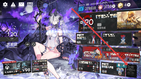 1、進(jìn)入到明日方舟首頁中,可以點(diǎn)擊倉庫,進(jìn)入查看物品道具。
