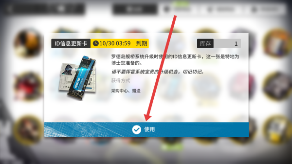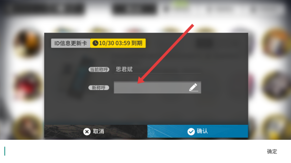 3、點(diǎn)擊ID信息更新卡后,可以點(diǎn)擊使用按鈕使用該道具進(jìn)行改名操作。