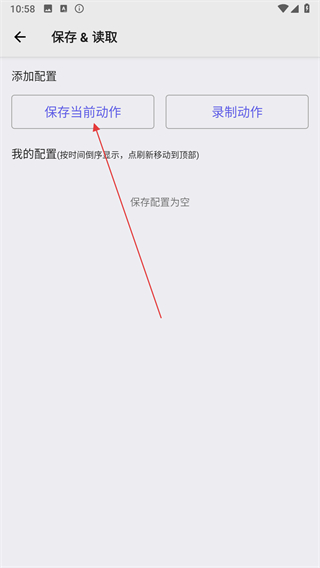 4、然后進(jìn)入保存界面,點(diǎn)擊保存當(dāng)前動(dòng)作按鈕,將點(diǎn)擊動(dòng)作配置保存。