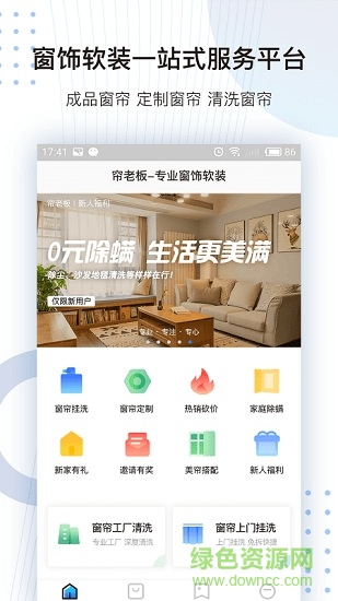 簾老板安卓手機版是一款非常好用的窗簾服務app,提供上門安裝清洗等服務,還可以在商城購買和定制窗簾,提供工廠清洗和上門清洗兩種選擇,歡迎喜愛的朋友到綠色資源網下載使用!