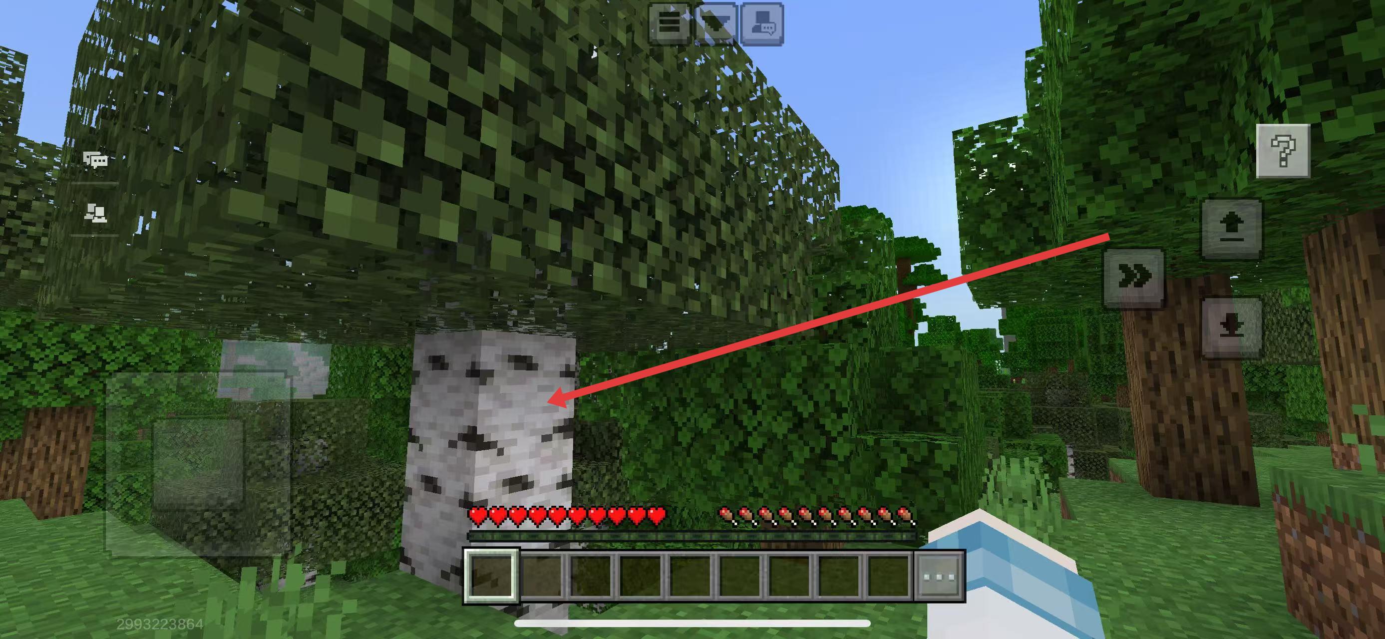 1、在森林場(chǎng)景,找到白樺樹,靠近后長按樹干,使用合適工具如斧可采集原木,用于后續(xù)合成。