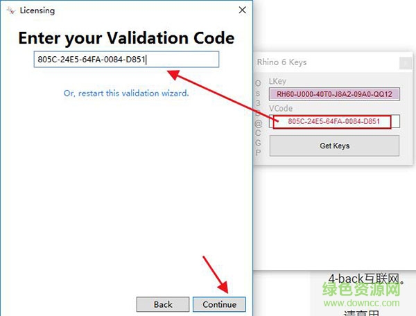 7.注冊機上的激活碼復(fù)制到軟件上然后點擊continue,完成之后重啟軟件就是