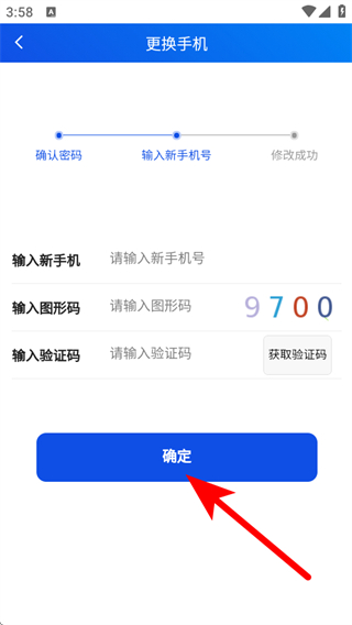 4、輸入新手機(jī)號(hào)等信息后,點(diǎn)擊確定,完成手機(jī)號(hào)碼修改操作。