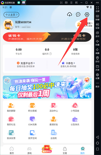 2、點(diǎn)擊后進(jìn)入個(gè)人空間界面,然后點(diǎn)擊右上角的齒輪按鈕進(jìn)入設(shè)置功能界面;