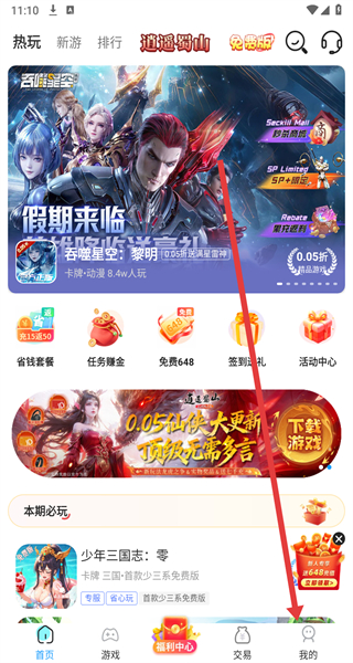 1、首先打開游戲盒子,進(jìn)入盒子后點(diǎn)擊界面右下角【我的】;