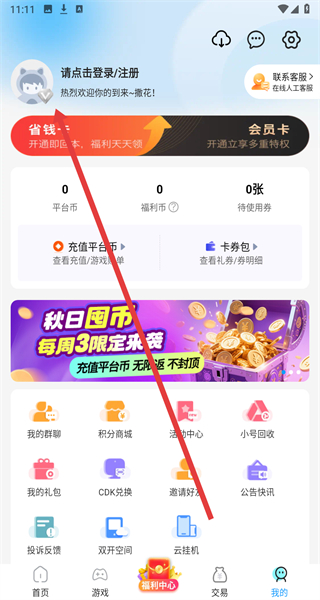 2、進(jìn)入到我的主頁(yè)后,可以通過點(diǎn)擊上方頭像區(qū)域,準(zhǔn)備進(jìn)行登錄。