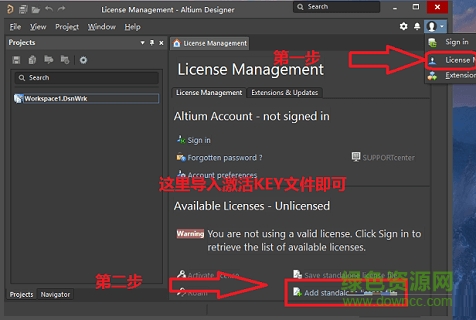 8.選擇左上角的License Management 在點擊Add standalone license file 導入KEY激活秘鑰模板