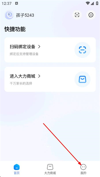 1、打開(kāi)大力家長(zhǎng)app,點(diǎn)擊底部導(dǎo)航欄我的選項(xiàng)。