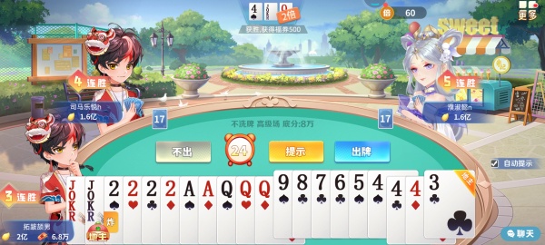玩家可根據(jù)手牌情況合理選擇叫地主,手牌優(yōu)秀時應積極爭取,從而提高勝算。