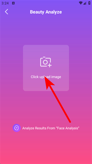 2、在Beauty Analyze頁面,點(diǎn)擊Click upload image區(qū)域,上傳需要測(cè)試的人臉圖片。